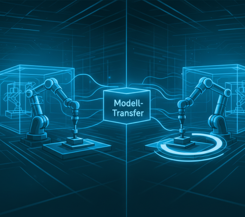 Digitaler Zwilling & Reinforcement Learning: Bevor der Roboter sich bewegt, lernt er in einer virtuellen Umgebung (Digital Twin) selbstständig optimale Bewegungsabläufe, die über Standardbefehle hinausgehen.